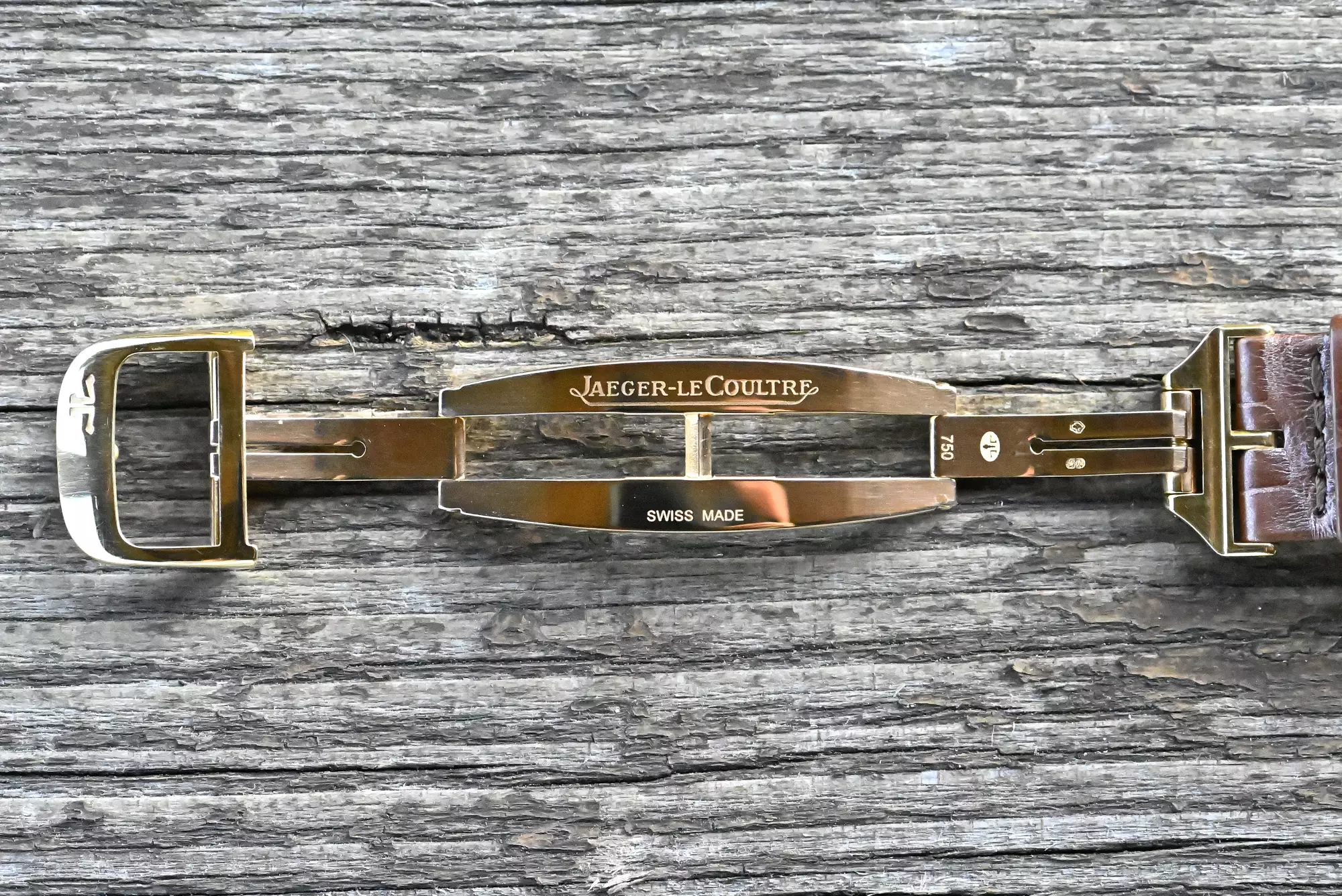 This Reverso comes with the original JLC leather strap with original JLC double folding clasp in 18k yellow gold (current retail price at JLC €3,500). This Reverso is in good condition and comes in a full set with triple packaging, including the original JLC box with outer carton and cardboard carton – warranty certificate (sold in March 2010) – Reverso description/booklet – sticker – JLC Reverso correction pen for the second time zone.