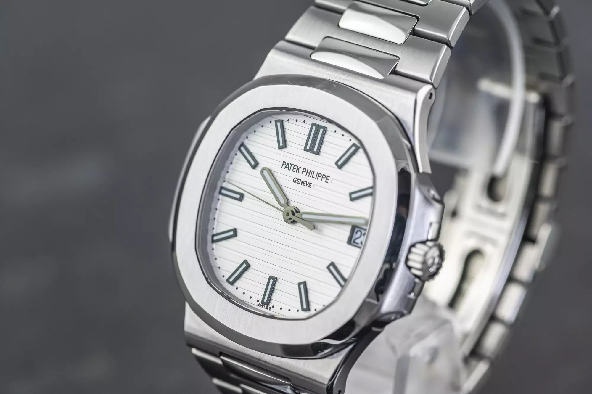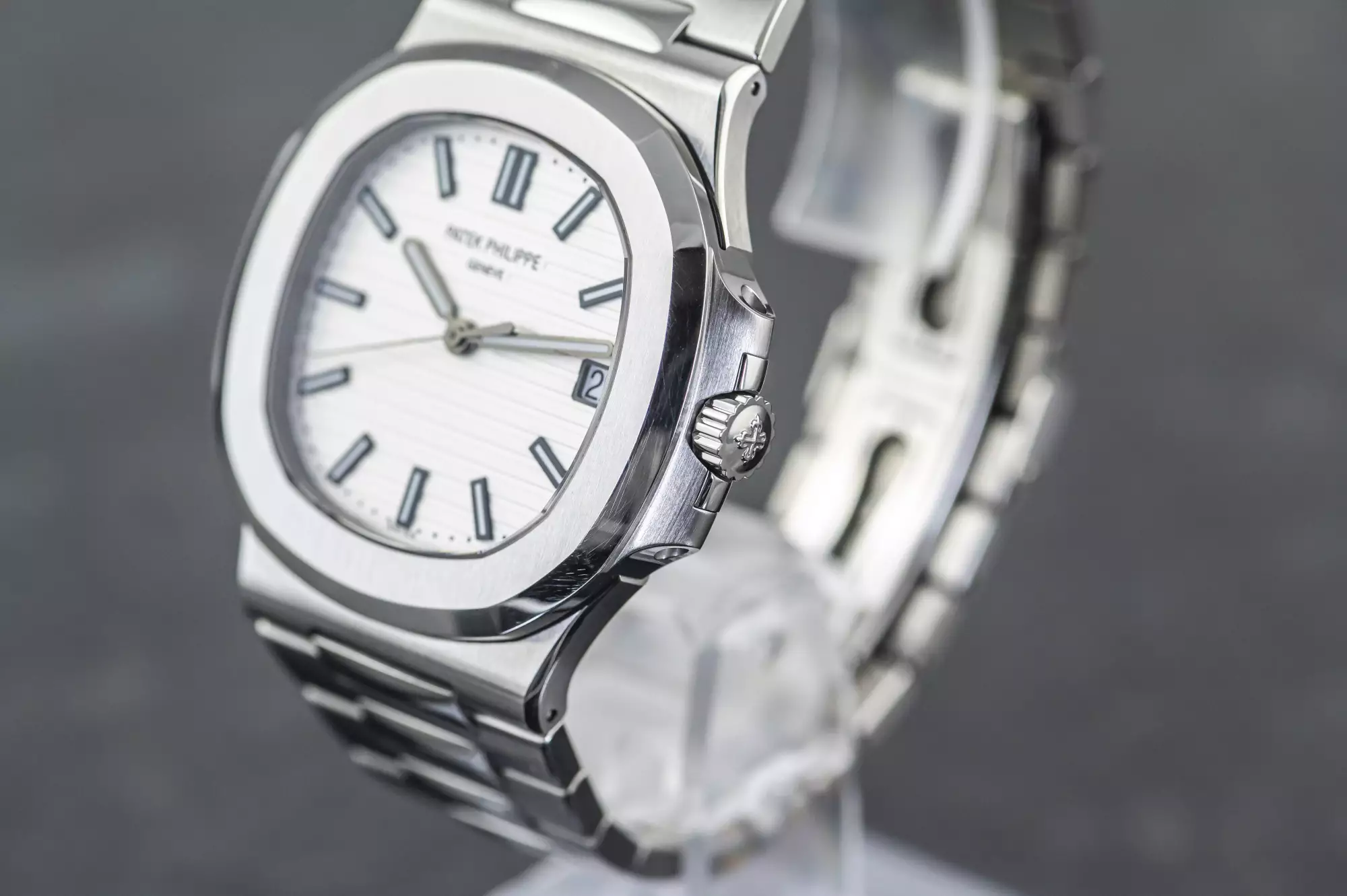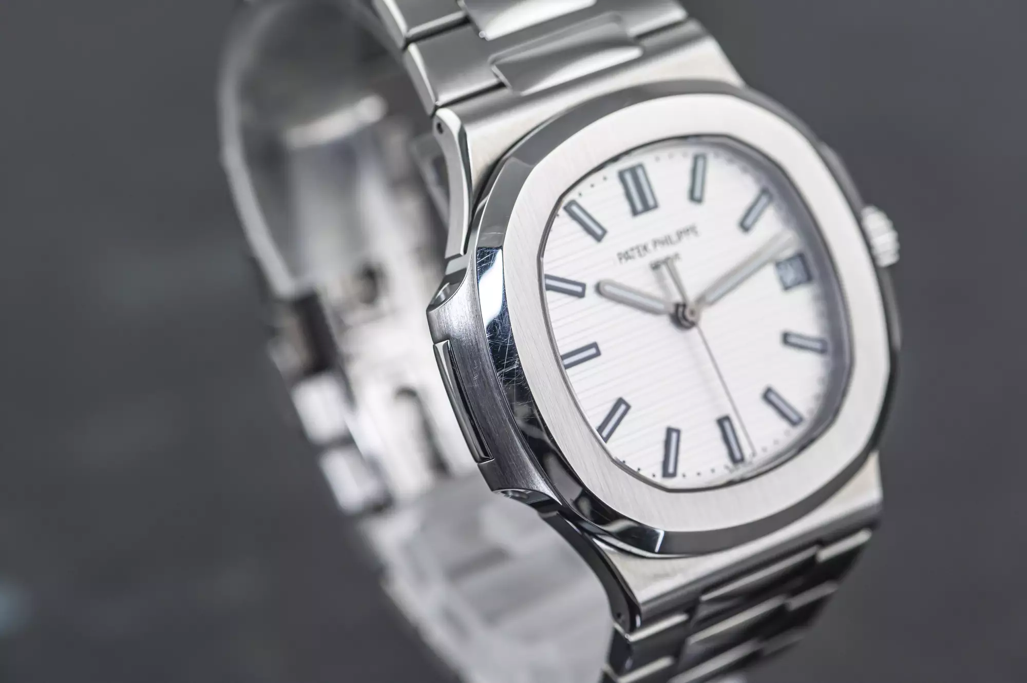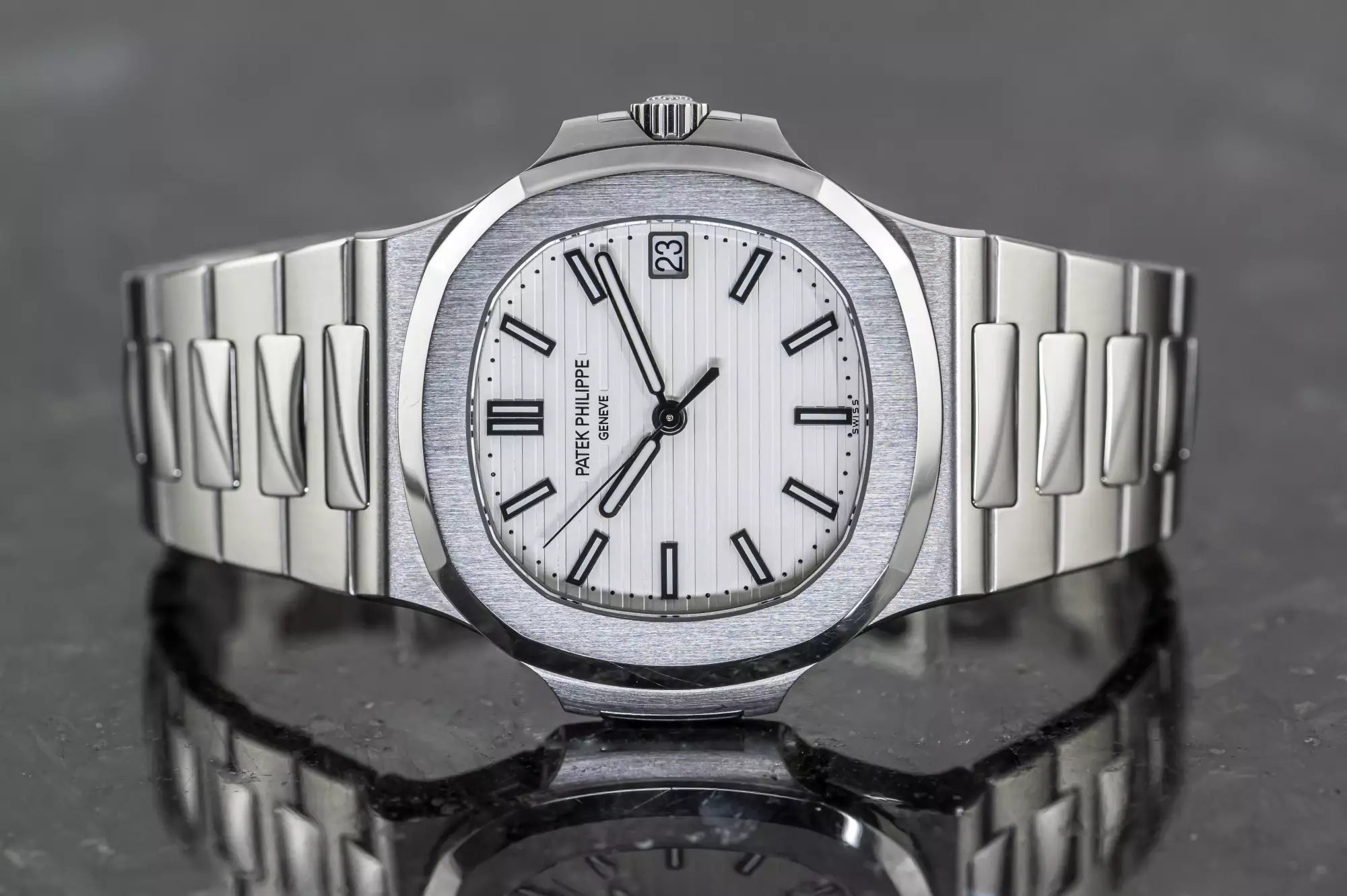 Stunning Patek Philippe Jumbo Nautilus with the reference number 5711/1A-011 in steel. This version of the 5711 is a very special one and not only because of the beautiful white dial!