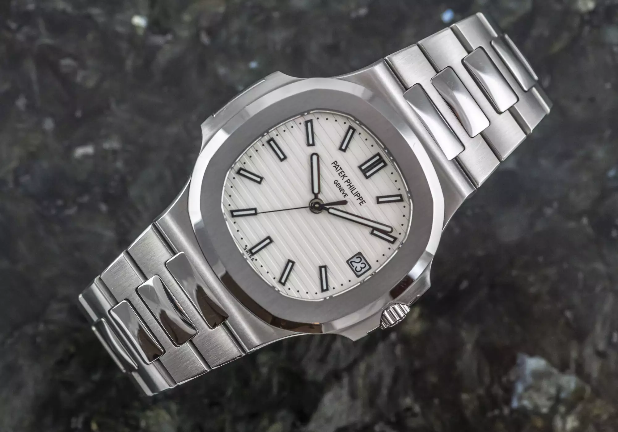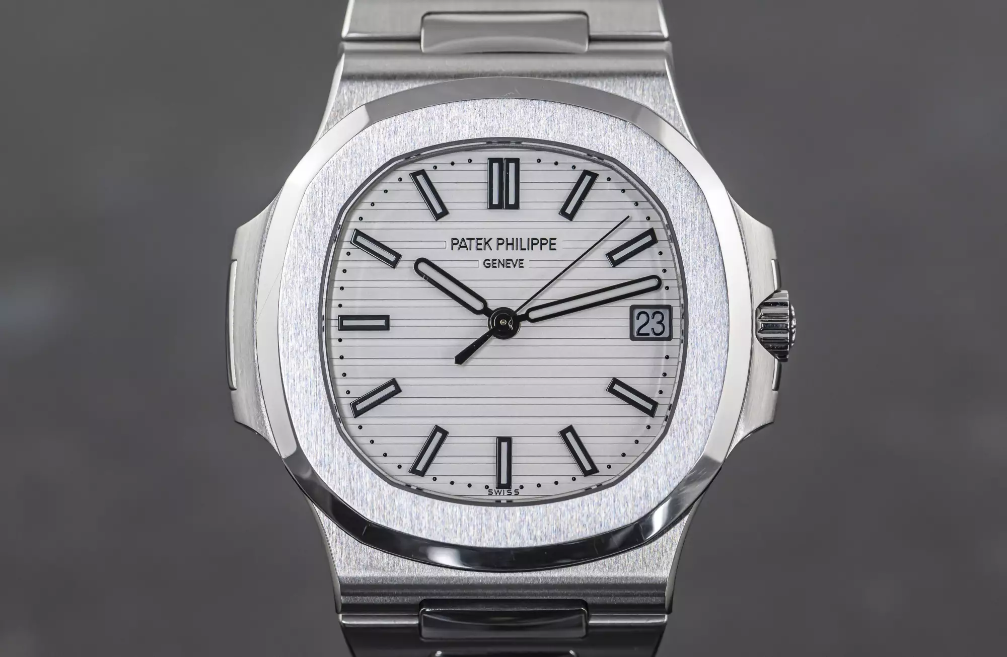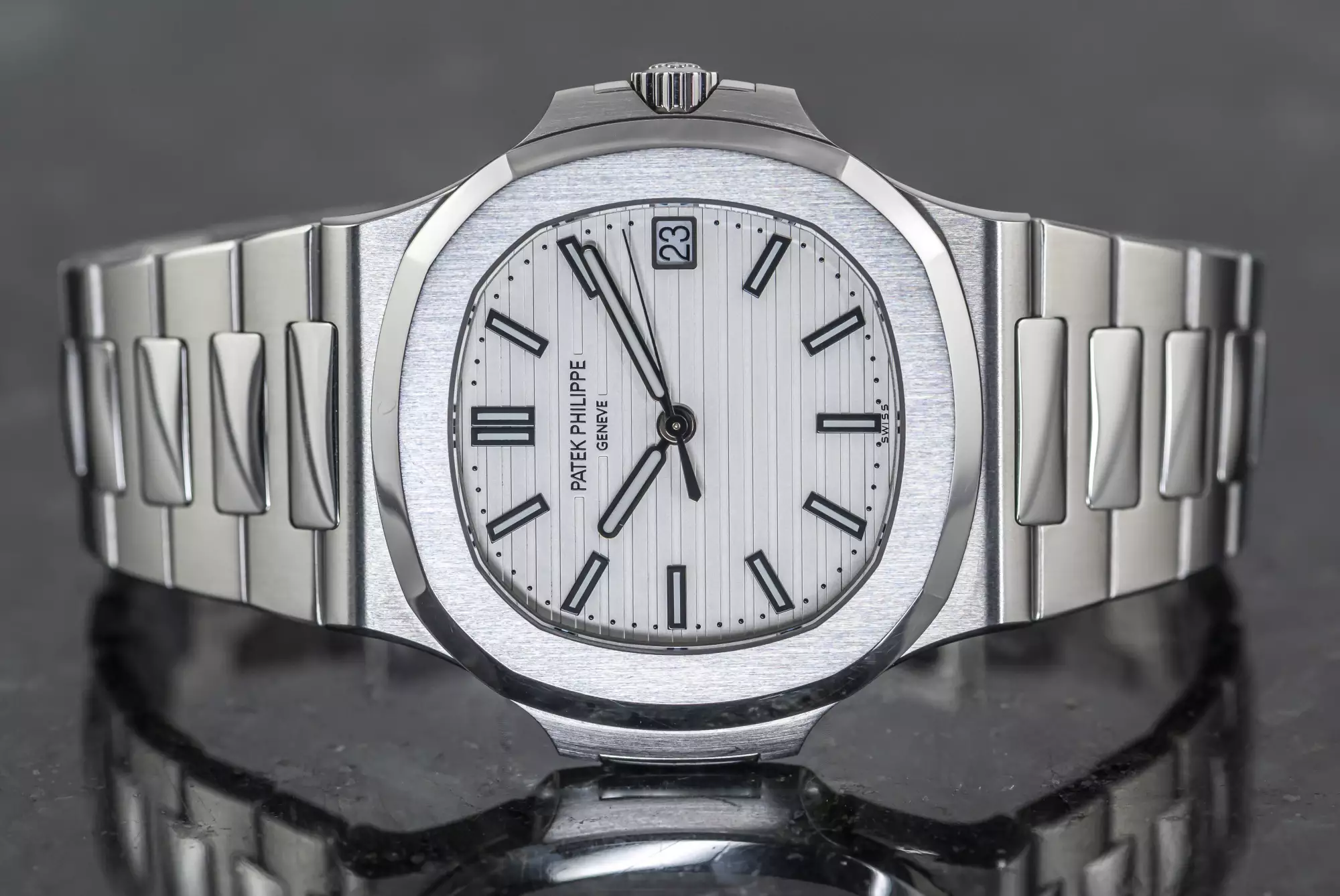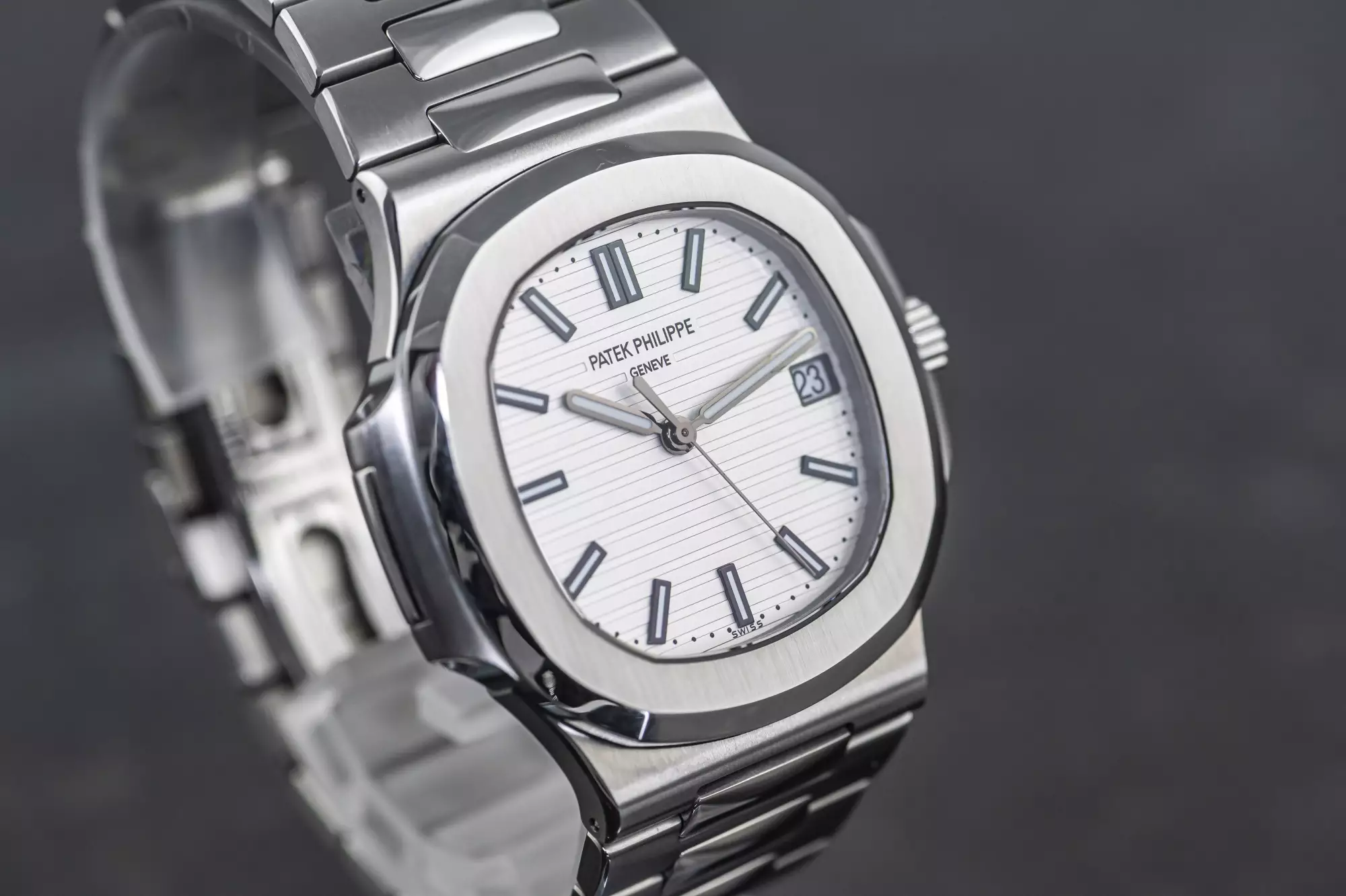 Stunning Patek Philippe Jumbo Nautilus with the reference number 5711/1A-011 in steel. This version of the 5711 is a very special one and not only because of the beautiful white dial!