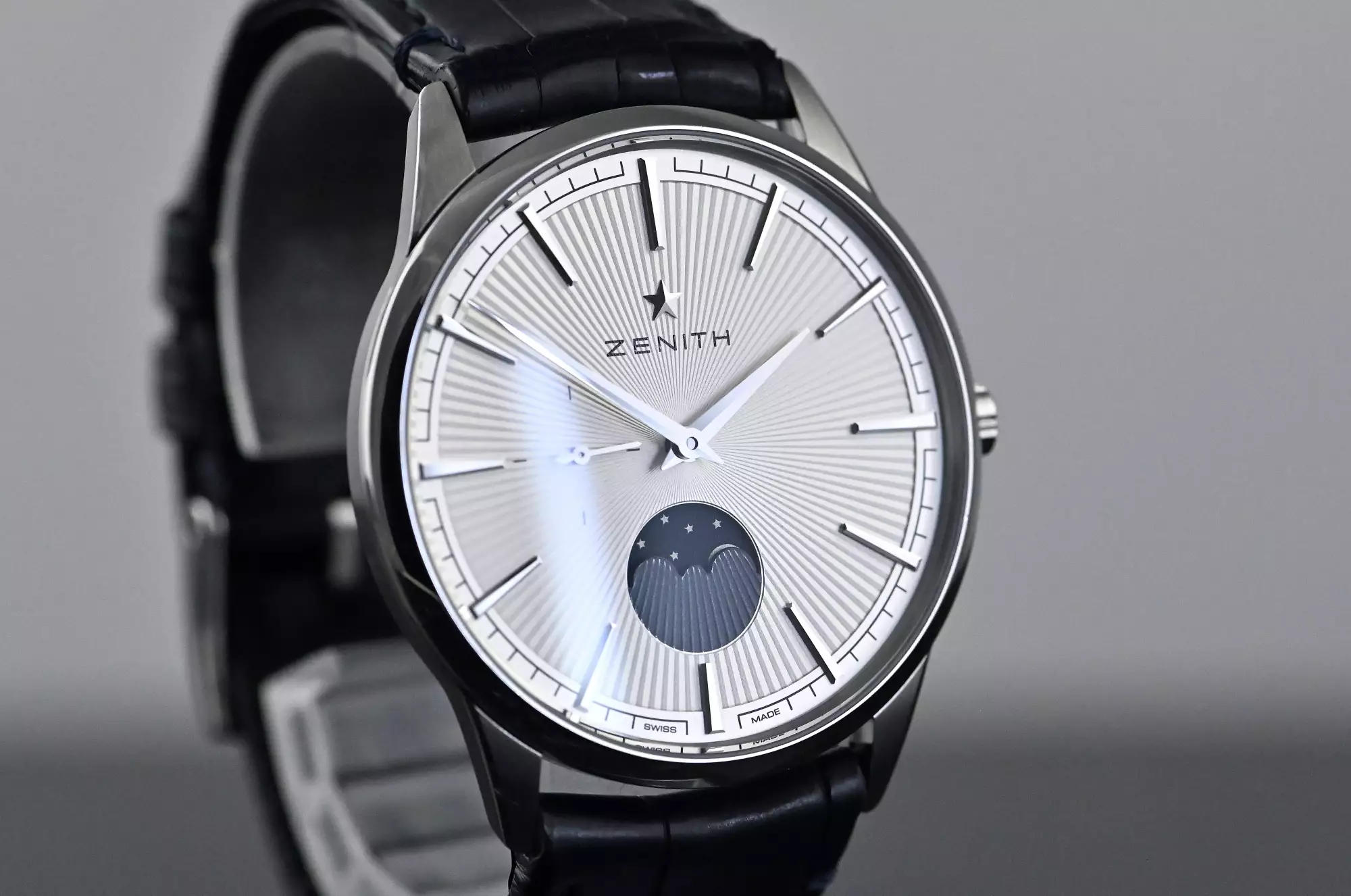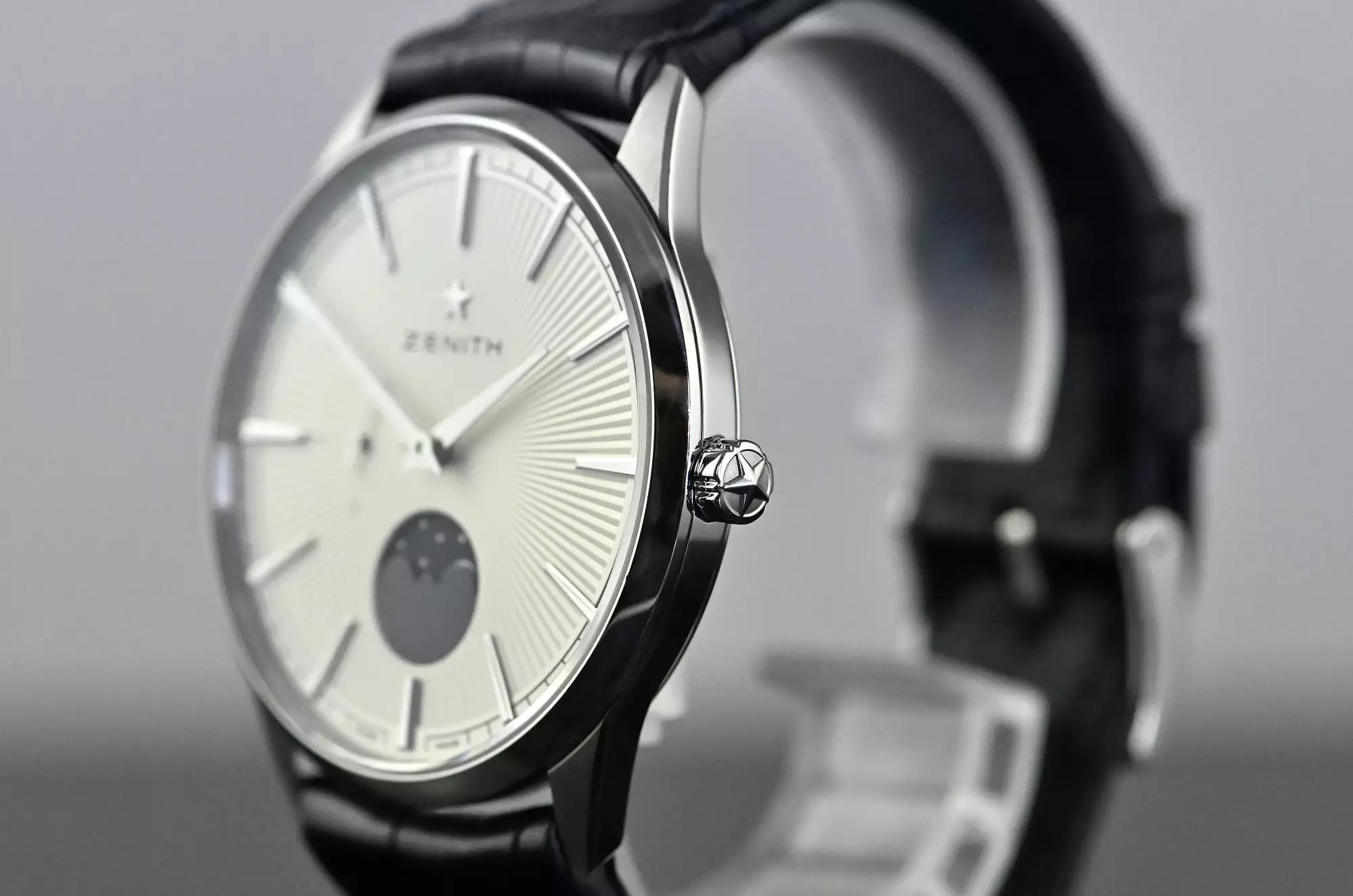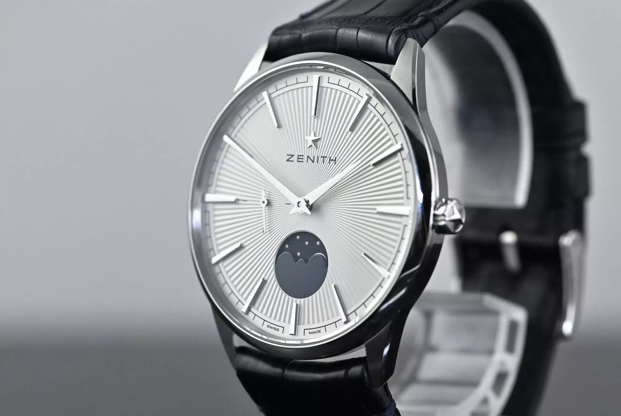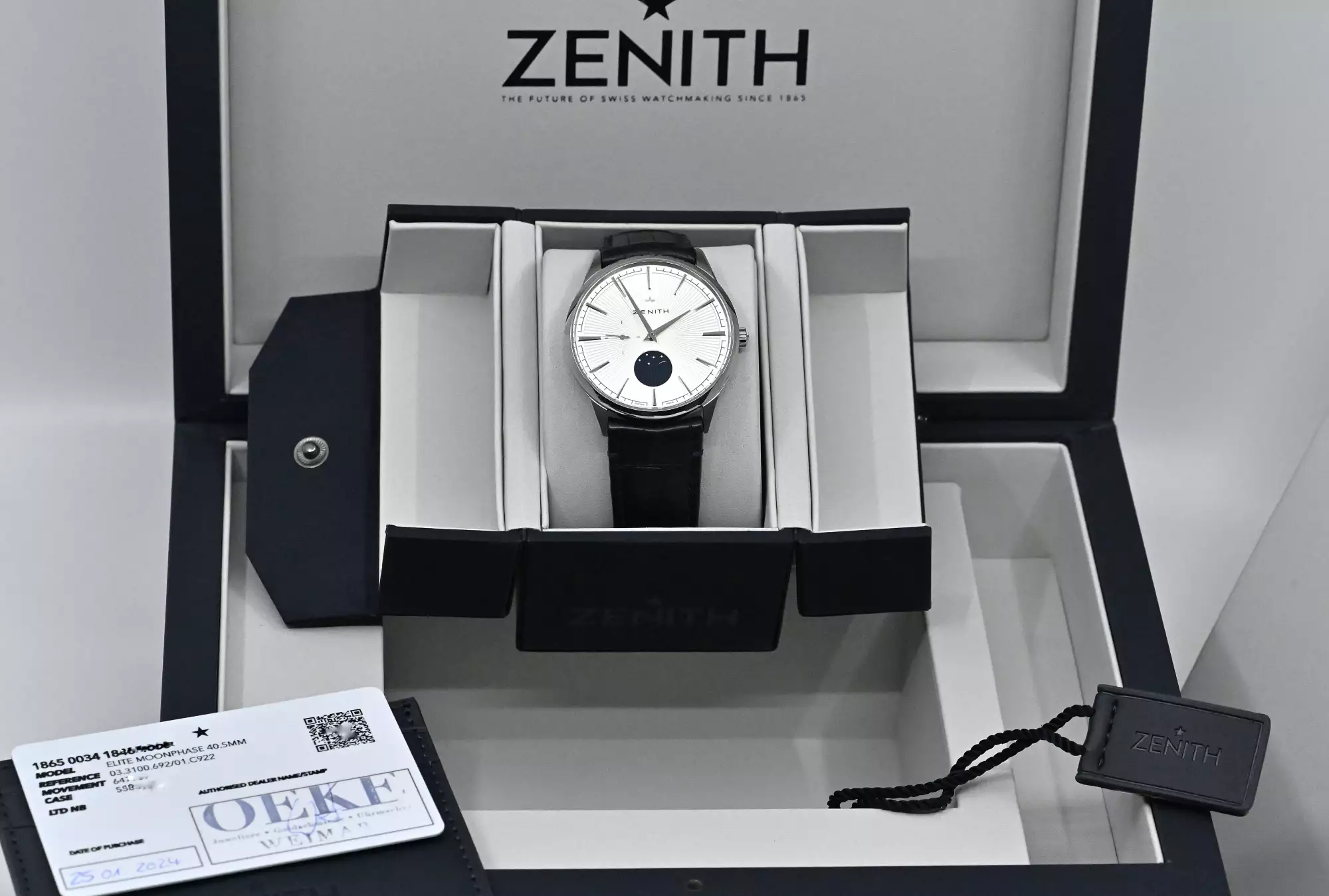 Stylish Zenith Elite Moonphase with the reference 03.3100.692/01.C922 in steel. This watch features the Zenith automatic calibre 692 with moon phase display at 6 o'clock and small seconds at 9 o'clock.
