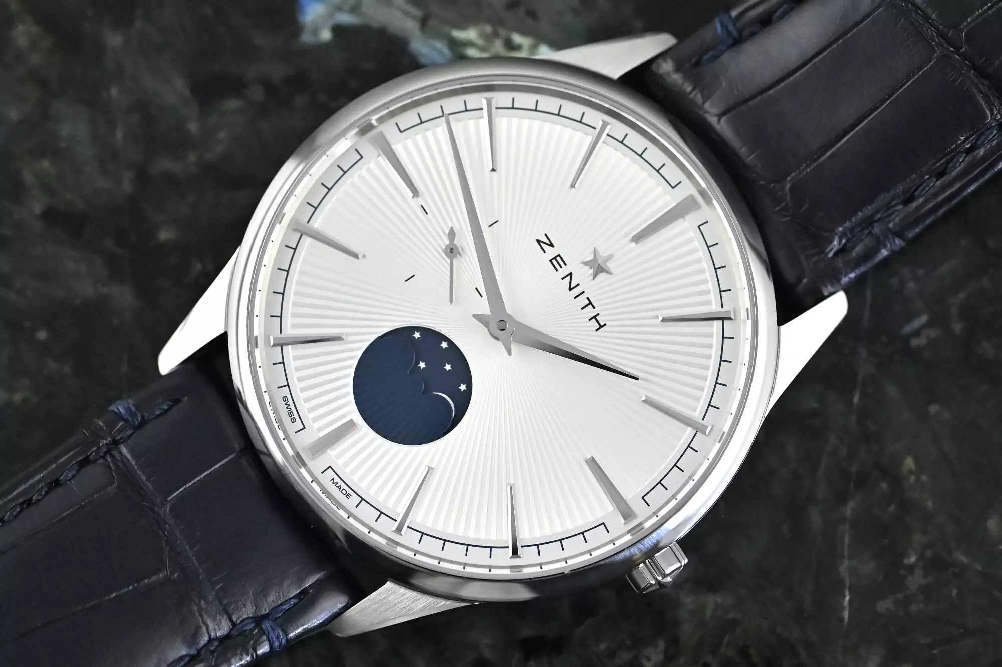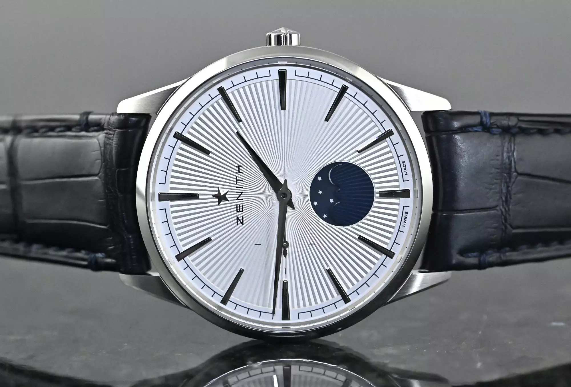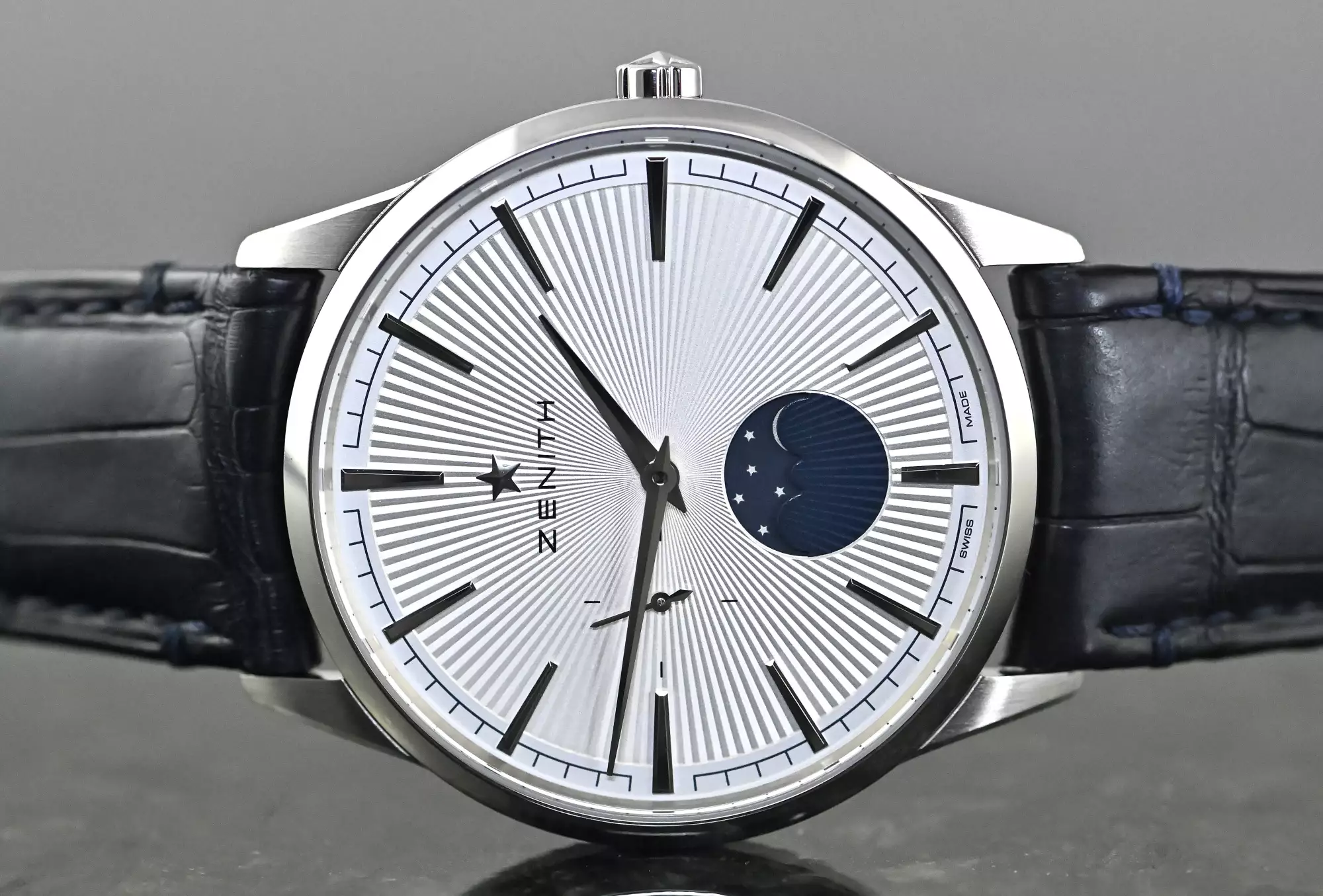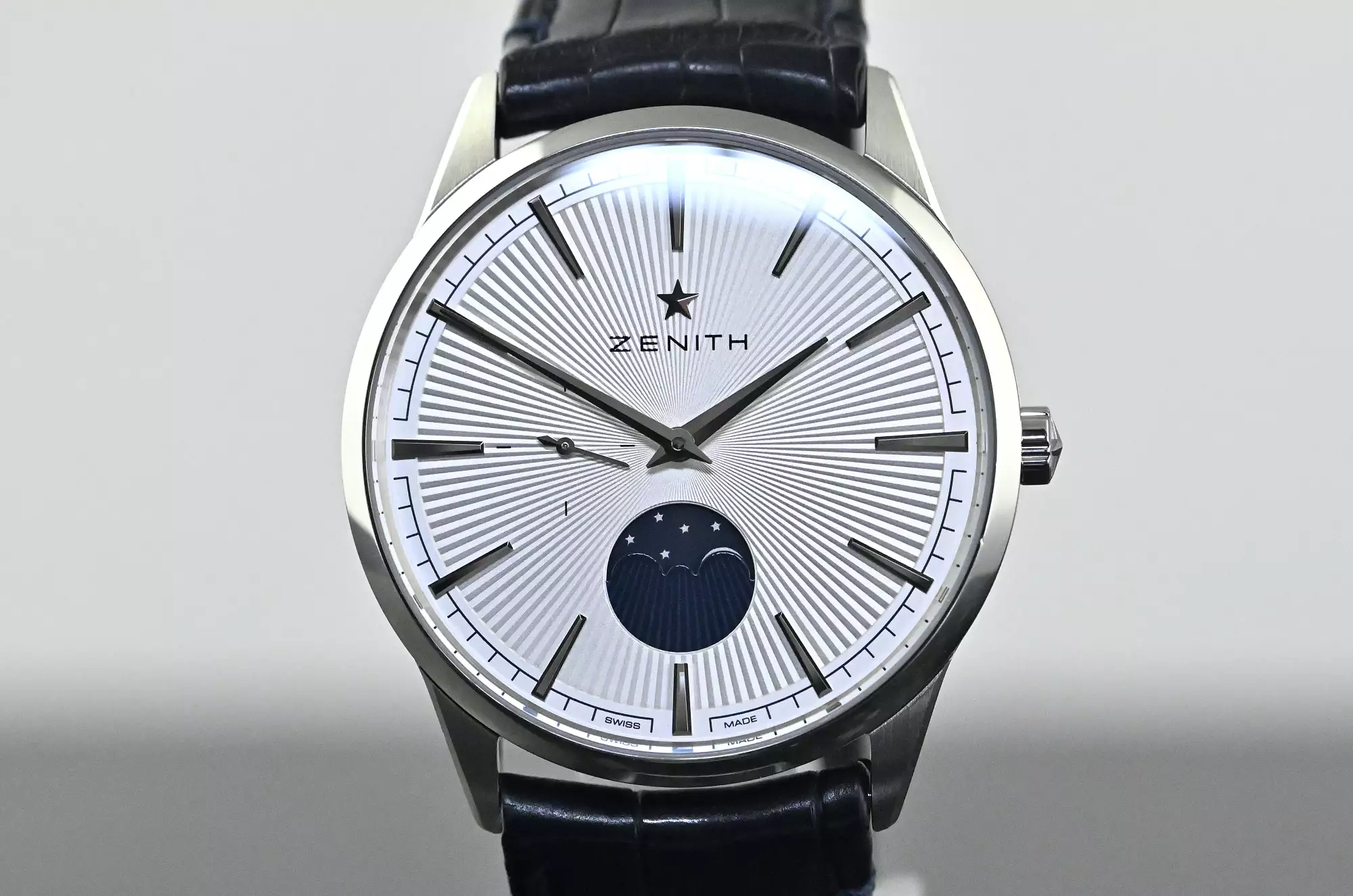 Stylish Zenith Elite Moonphase with the reference 03.3100.692/01.C922 in steel. This watch features the Zenith automatic calibre 692 with moon phase display at 6 o'clock and small seconds at 9 o'clock.
